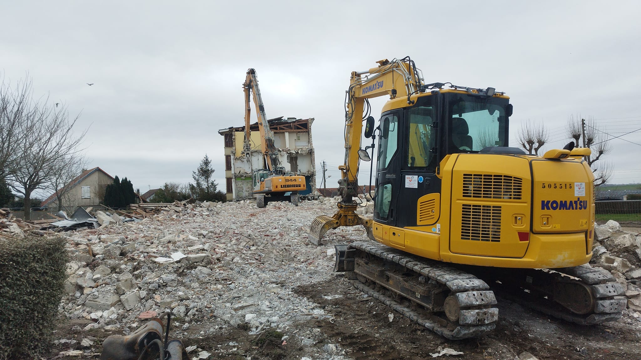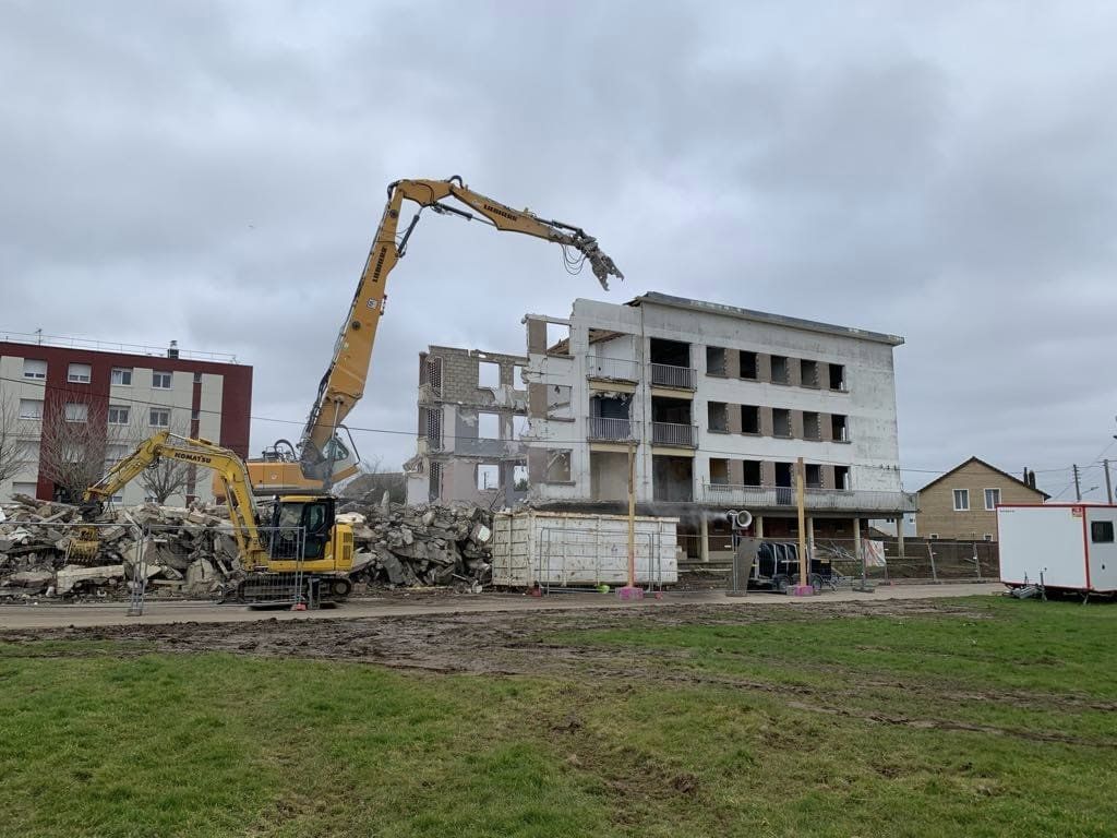 Puis nos équipes ont procédé à la démolition des bâtiments en structure poteau / poutres béton, dalles intermédiaires béton, charpente bois, cave en rez-de-chaussée et infrastructures du bâtiment.